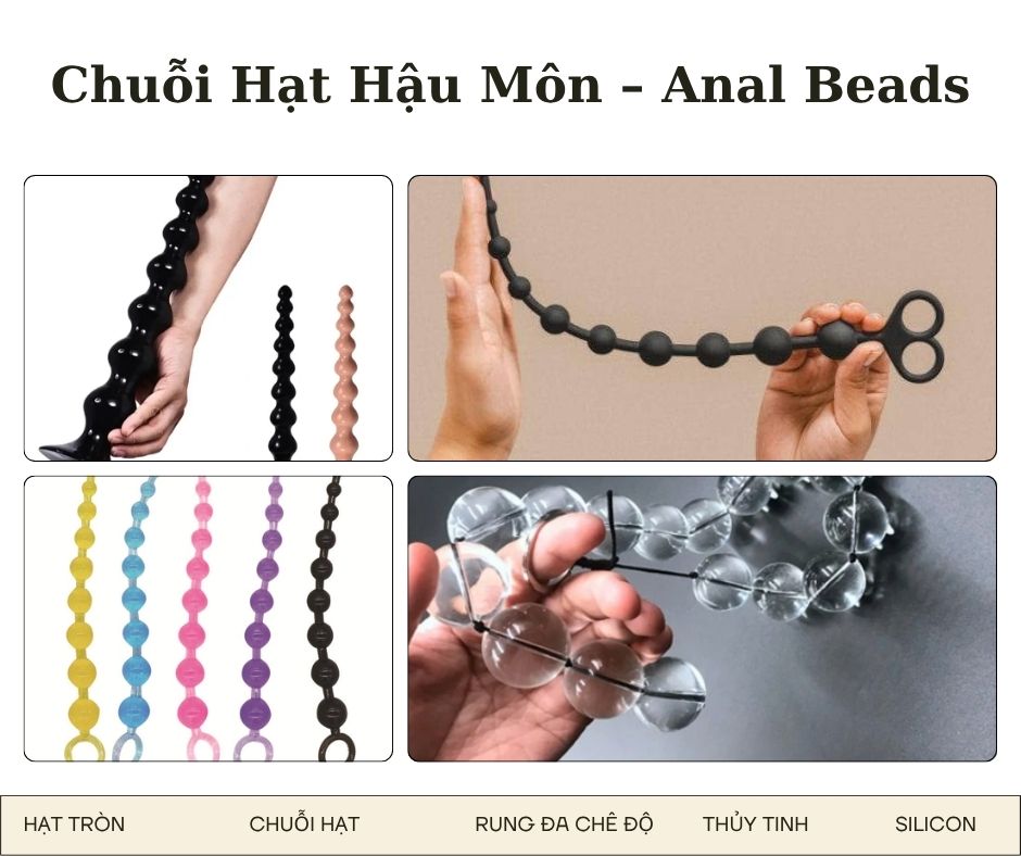 Chuỗi hạt hậu môn được thiết kế như một dải gồm nhiều hạt tròn nối liền nhau, tạo hiệu ứng khoái cảm theo nhịp khi đưa vào hoặc rút ra. Đây là loại đồ chơi mang lại cảm giác tăng dần và cao trào rõ rệt, rất được ưa chuộng bởi người thích sự kích thích có kiểm soát.