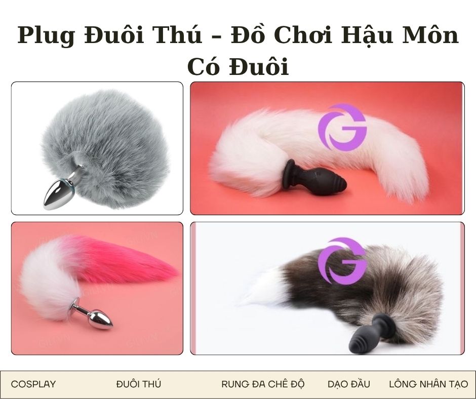 Plug đuôi thú là loại đồ chơi hậu môn mang tính thẩm mỹ và hóa thân nhẹ nhàng. Phần đuôi thường làm từ lông nhân tạo, kết hợp cùng đầu plug nhỏ gọn mang lại cảm giác dễ chịu khi sử dụng.