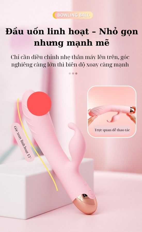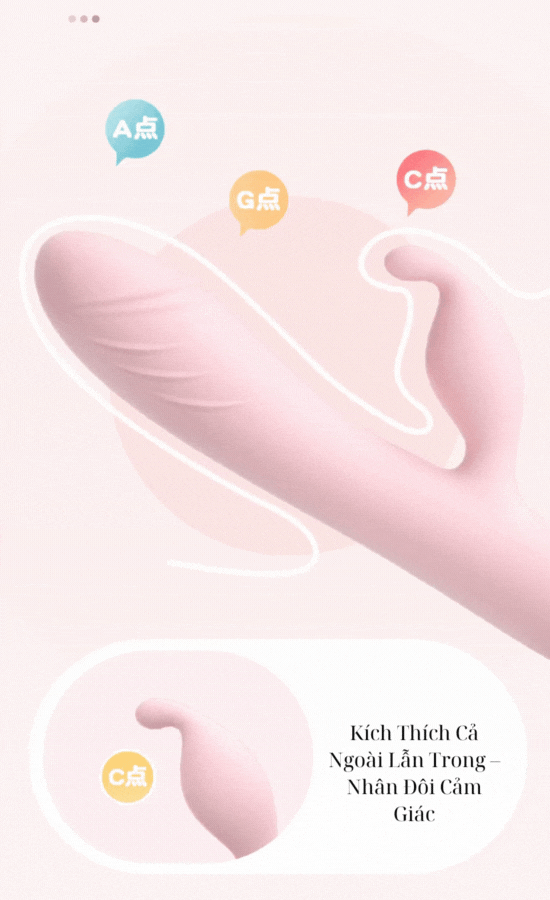Phần đầu xoay mạnh mẽ thâm nhập sâu, len lỏi kích thích điểm G và điểm A – hai vùng khoái cảm bên trong giúp nàng dễ dàng đạt cực khoái đầy mãnh liệt. Cùng lúc đó, phần đầu phụ bên ngoài rung mơn trớn nhẹ nhàng tại điểm C, mang đến cảm giác thỏa mãn kép không thể cưỡng lại.