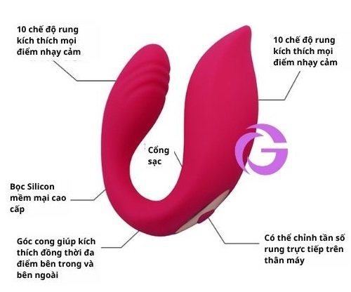 Thiết Kế Công Thái Học: Hình dạng chữ U với độ cong lý tưởng giúp kích thích trực tiếp điểm G bên trong và bên ngoài cùng lúc, mang lại khoái cảm kép mạnh mẽ.