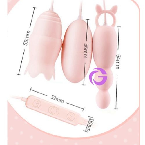 Bộ 3 Đầu Rung Chuyên Biệt: Sản phẩm bao gồm ba đầu rung được thiết kế để phục vụ cho các nhu cầu kích thích khác nhau: